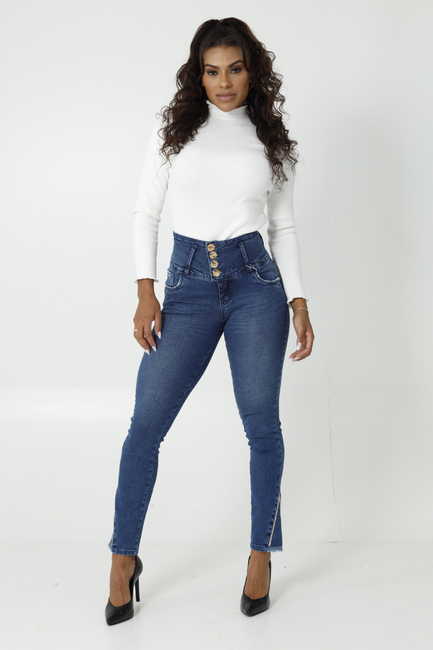 A Calça Feminina Jeans Cigarrete Modeladora Strass em V chega para elevar seu guarda-roupa com estilo atual e feminino. Com visual moderno e cintura alta, valoriza as curvas com sofisticação. O jeans azul intenso traz presença e charme imediato. Ideal para quem busca calça jeans feminina com design marcante e conforto diário.