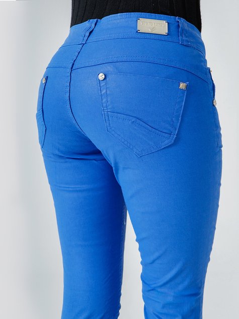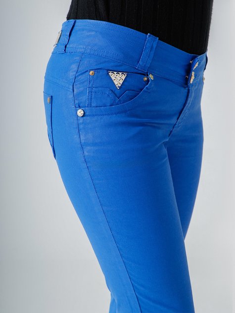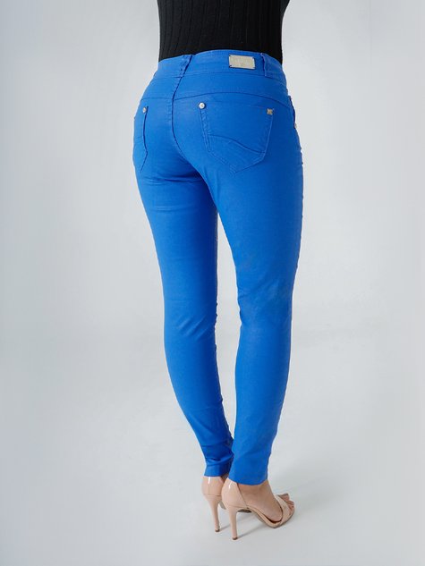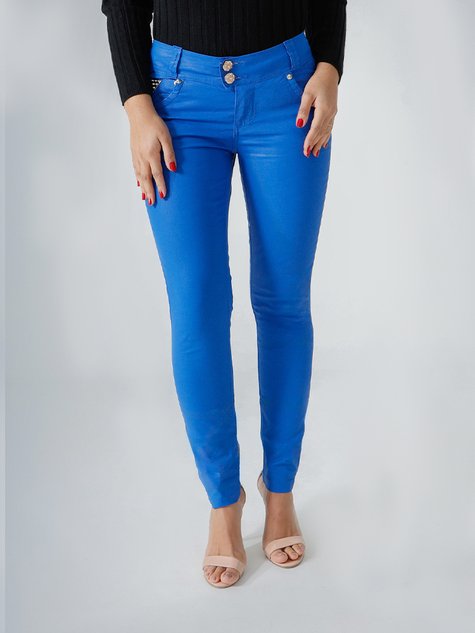 Calça Feminina Jeans Color Metalizada Cintura Baixa
