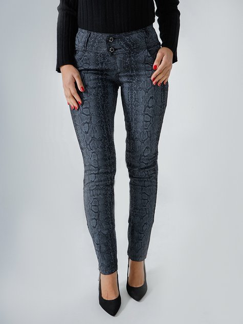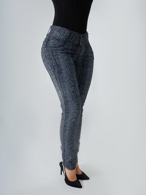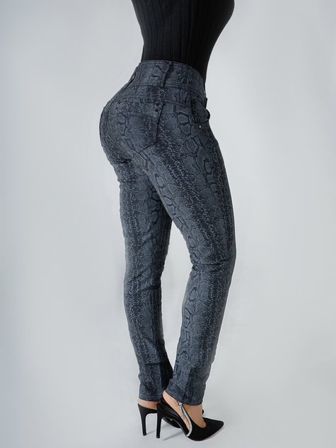 Calça Feminina Jeans Color Metalizada Cintura Baixa