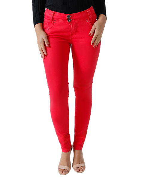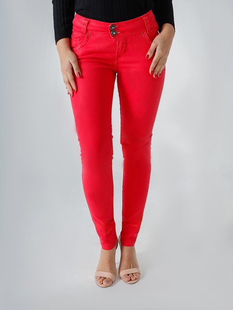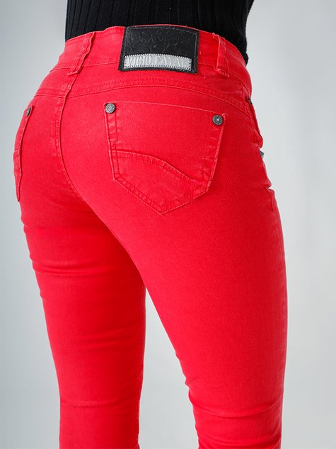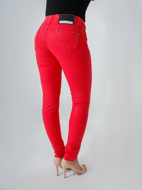 Calça Feminina Jeans Color Metalizada Cintura Baixa
