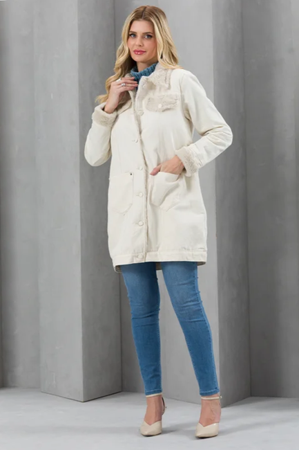 O interior da jaqueta feminina sarja Edex é peluciada com tecido grosso, especialmente pensado para o inverno. O combo design alongado com o interior totalmente forrado em pelinhos é a escolha perfeita para quem procura uma jaqueta super quente e resiste ao frio intenso do inverno. Utilizando apenas ela você pode combinar com vestidos ou peças únicas por baixo, mantendo-se sempre bonita e aquecida.
